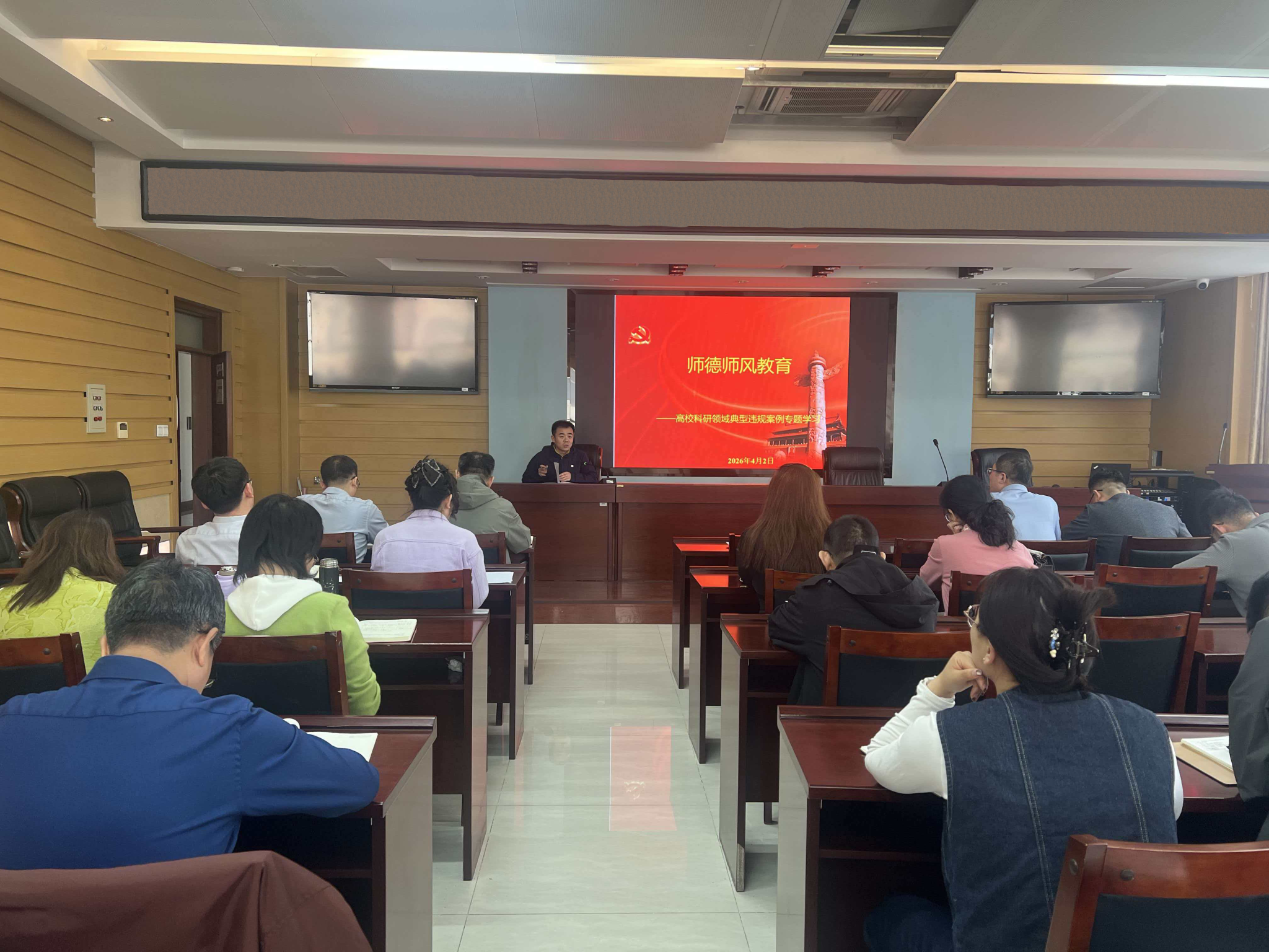 为进一步加强师德师风建设,严守科研诚信底线,规范教师学术行为。2026年4月2日下午,丝瓜视频 组织全体教师开展师德师风专题学习。